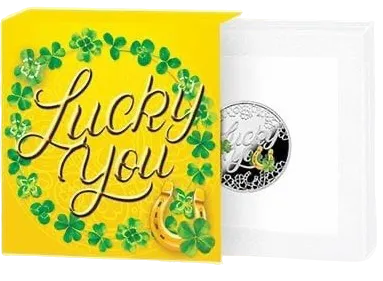 Монета посвящена теме удачи. Качество Proof, края отфрезерованы, она поставляется в тематическом футляре вместе с сертификатом подлинности.