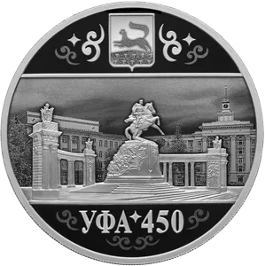 Монета «450-летие основания г. Уфы», СПМД, 2024 г., Серебро, 31,1 гр., проба 925, РОССИЯ