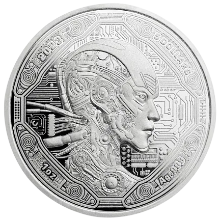 Эта замечательная серебряная монета в 1 унцию посвящена искусственному интеллекту и конкретно ИИ-киборгу. Монета имеет замечательный дизайн с изображением гуманоидного робота с искусственным интеллектом и поставляется в футляре вместе с сертификатом подлинности. Ограниченный тираж 2,023 штук по всему миру.