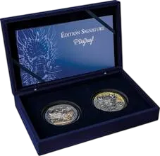 Этот эксклюзивный набор из двух серебряных монет весом 5 унций входит в серию «Edition Signature» от студии P. De Greef и посвящен Фениксу, одному из самых могущественных мифических существ, символизирующему возрождение и преображение. Феникс - птица, которая сгорает в огне и вновь возрождается из пепла.