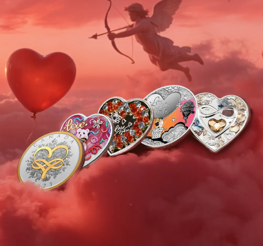 — В нашем каталоге есть несколько монет, посвященных Дню Святого Валентина. На реверсе одной из таких в форме сердца изображен маленький розовый медведь в золотой бабочке, держащий большой кристалл.