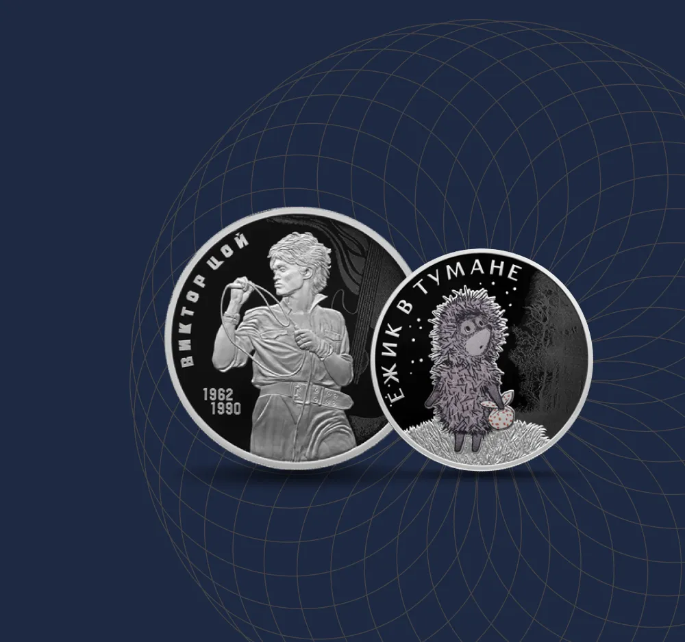 К слову, и монета "Ёжик в тумане" 2024 года выпуска, и монета, посвященная творчеству Виктора Цоя, есть в наличии в каталоге "Золотой Платы".